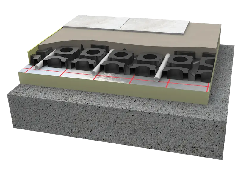 Podlahové vytápění je moderní, efektivní a úsporné řešení, které zajišťuje rovnoměrné rozložení tepla v místnosti. Nabízíme instalaci vodního podlahového vytápění pro rodinné domy, byty, haly, autosalony, mrazírny a další komerční objekty.